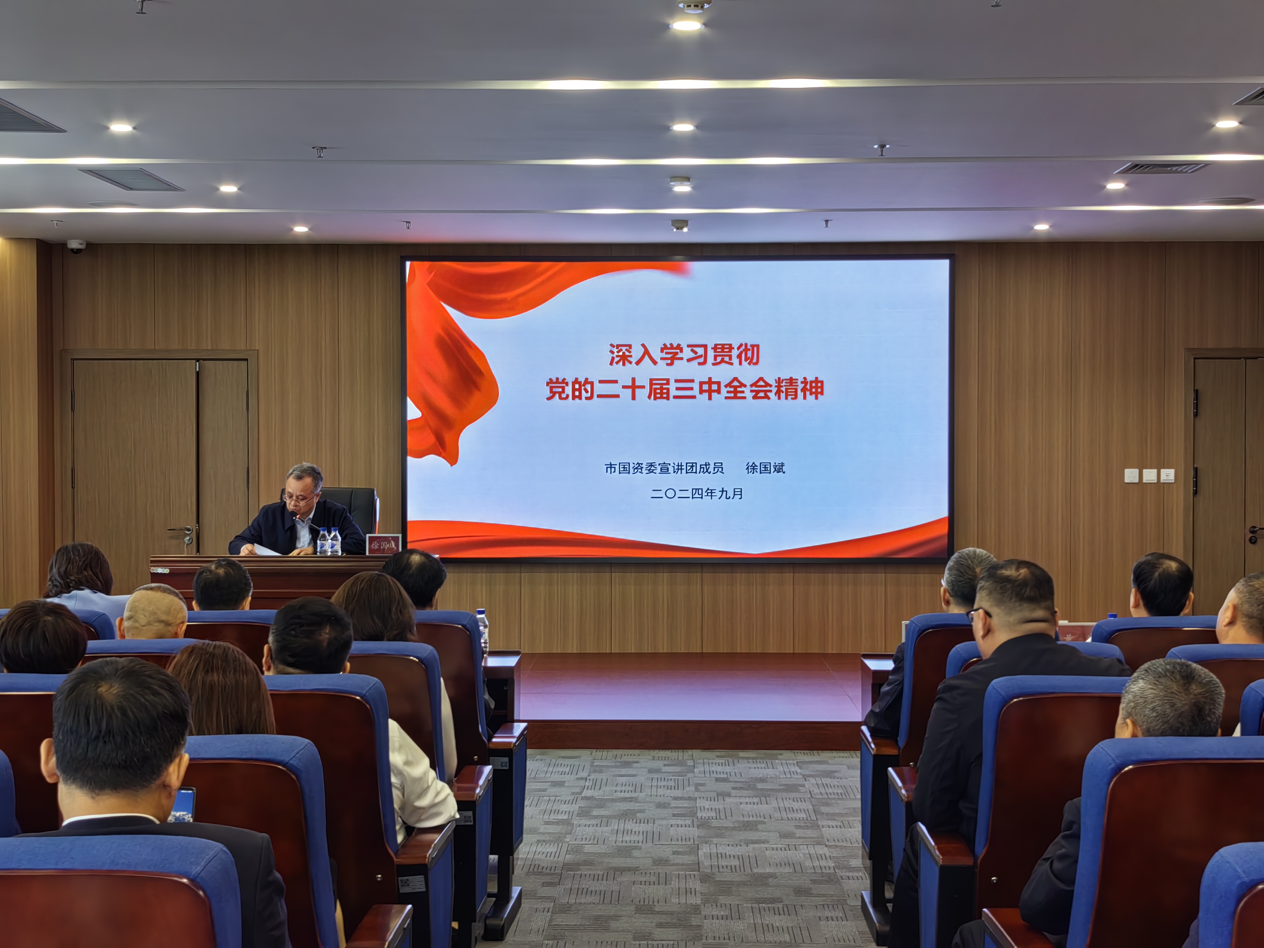 9月20日,長春國投集團在科創(chuàng)大廈23樓會議室召開黨的二十屆三中全會精神專題宣講會。市國資委宣講團成員、長春國投集團黨委書記、董事長徐國斌對全會精神作專題宣講,集團班子成員、總部中層以上黨員干部、出資企業(yè)班子成員共70余人參會。