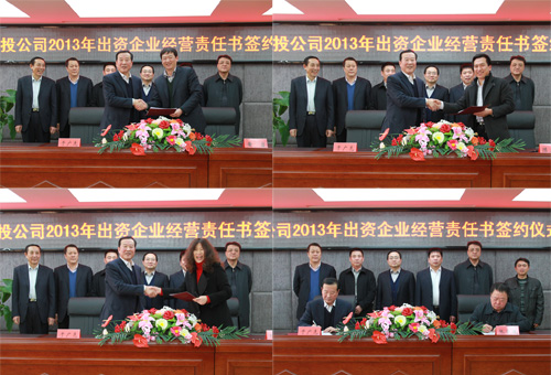 會后,國投公司與資產(chǎn)管理分公司、匯澤投資公司、國中文化傳媒公司和維鴻東光電子器材有限公司四戶出資企業(yè)負責人簽訂了2013年《資產(chǎn)經(jīng)營責任書》。