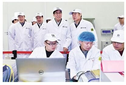 11月3日,省委書記巴音朝魯在長春新區(qū),就創(chuàng)新發(fā)展、加快中部地區(qū)轉(zhuǎn)型升級進行調(diào)研。圖為巴音朝魯在長春航天信息產(chǎn)業(yè)園詳細察看衛(wèi)星總裝與試驗大廳。記者 宋鍇 攝