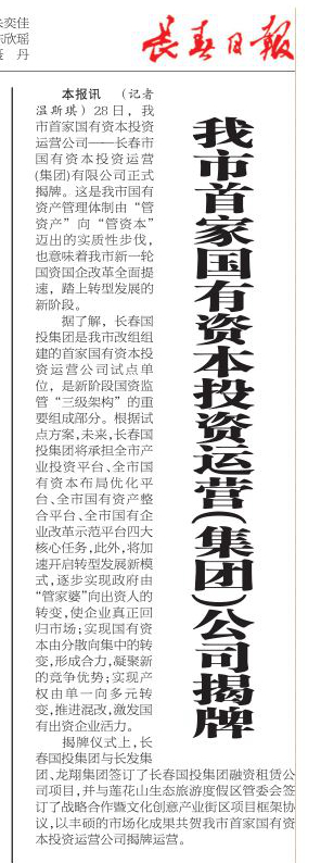 28 日,我市首家國有資本投資運(yùn)營公司——長春市國有資本投資運(yùn)營(集團(tuán))有限公司正式揭牌。這是我市國有資產(chǎn)管理體制由“管資產(chǎn)”向“管資本”邁出的實(shí)質(zhì)性步伐,也意味著我市新一輪國資國企改革全面提速,踏上轉(zhuǎn)型發(fā)展的新階段。