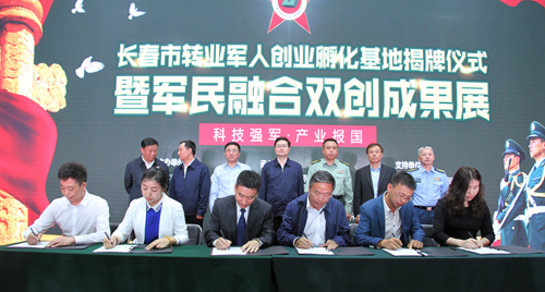 9月16日,長春國投集團(tuán)與長春市人社局合作共同打造的長春市轉(zhuǎn)業(yè)軍人創(chuàng)業(yè)孵化基地正式揭牌運(yùn)營。來自全國11個(gè)城市的140余家企業(yè),2000余名黨政軍領(lǐng)導(dǎo)和退役軍人齊聚長春市轉(zhuǎn)業(yè)軍人創(chuàng)業(yè)孵化基地新址,共同見證了長春市轉(zhuǎn)業(yè)軍人創(chuàng)業(yè)孵化基地揭牌儀式的隆重舉行。市委常委、常務(wù)副市長王路,市人大副主任王明德,市政協(xié)副主席張寶琦,省工信廳副廳長盧大明,省人社廳副廳長姬國海,長春警備區(qū)司令員華義,空軍航空大學(xué)副政委何國祥,沈陽軍區(qū)善后辦轉(zhuǎn)業(yè)辦主任董建忠,吉林省軍區(qū)政治工作部副主任胡靜波出席揭牌儀式并致辭。儀式由市委組織部副部長、市人社局黨組書記、局長孟憲新主持。與會(huì)領(lǐng)導(dǎo)分別為“長春市轉(zhuǎn)業(yè)軍人創(chuàng)業(yè)孵化基地”、“吉林省創(chuàng)業(yè)孵化基地”揭牌。