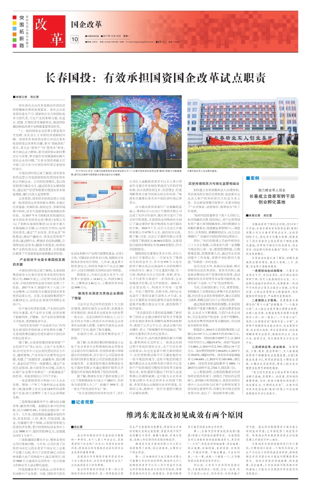 據(jù)了解,長春國投集團(tuán)積極推進(jìn)主業(yè)處于充分競(jìng)爭(zhēng)行業(yè)和領(lǐng)域的商業(yè)類國有企業(yè)混合所有制改革,有效探索重點(diǎn)領(lǐng)域混合所有制改革,在引導(dǎo)子公司層面改革的同時(shí)探索在集團(tuán)公司層面推進(jìn)混合所有制改革。長春國投所屬長春維鴻東光電子器材有限公司通過增資擴(kuò)股形式開展混合所有制改革取得了很好的效果。
