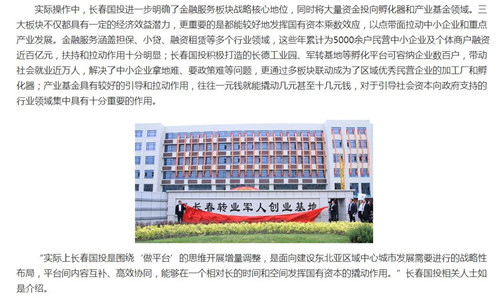 “實(shí)際上長春國投是圍繞‘做平臺’的思維開展增量調(diào)整,是面向建設(shè)東北亞區(qū)域中心城市發(fā)展需要進(jìn)行的戰(zhàn)略性布局,平臺間內(nèi)容互補(bǔ)、高效協(xié)同,能夠在一個(gè)相對長的時(shí)間和空間發(fā)揮國有資本的撬動(dòng)作用!遍L春國投相關(guān)人士如是介紹。