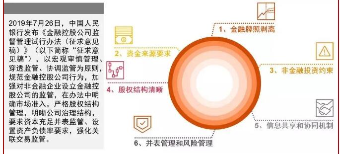 2019年,中國人民銀行發(fā)布的《金融控股公司監(jiān)督管理試行辦法(征求意見稿)》中也指出監(jiān)管應(yīng)根據(jù)黨中央、國務(wù)院決策部署,按照問題導(dǎo)向,補齊監(jiān)管制度短板,遵循宏觀審慎管理理念,以并表監(jiān)管為基礎(chǔ),對金融控股公司的資本、行為及風(fēng)險進(jìn)行全面、持續(xù)、穿透監(jiān)管。