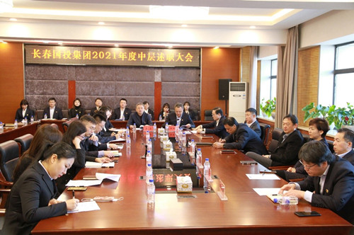 為貫徹落實中央和省、市國資委關(guān)于國企改革三年行動相關(guān)文件精神,按照集團三項制度改革要求,加強中層干部隊伍建設(shè),強化完善全員績效考核機制,1月20日,國投集團在九樓會議室召開2021年度中層述職大會。集團領(lǐng)導(dǎo)班子、全體中層干部及員工共45人出席會議。