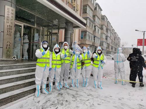 為全身心投入防疫工作,雅仕居項目的李揚(yáng)同志有家不回,專門在雅仕居旁邊小區(qū)租房住,24小時隨時準(zhǔn)備為居民服務(wù),消殺、掃碼、測溫、居民行動軌跡監(jiān)控,每樣工作都力求做到最好。隨著疫情形勢愈發(fā)嚴(yán)峻,她將全部精力投入到社區(qū)核酸檢測工作中,一站就是一天,有的時候半夜才能回到租住的小屋。特別是3月15日, 長春驟降暴雪,雅仕居物業(yè)團(tuán)隊一方面有序疏導(dǎo)業(yè)主,另一方面全員參與園區(qū)清雪,無一人退縮。