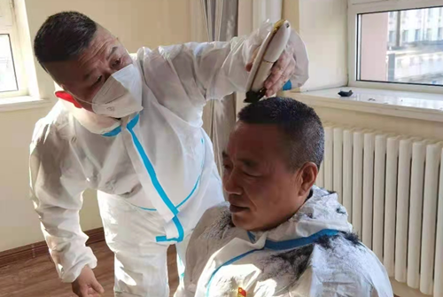 3月27日,寬城區(qū)全面提級封閉管理,規(guī)定參與值守的志愿者由社區(qū)統(tǒng)一安排住宿,不再回家居住。根據(jù)社區(qū)住宿安排情況,第八組以臨時黨支部書記劉寶峰為首,六名男同志繼續(xù)堅守社區(qū)防疫卡點崗位,“盡管工作很累、條件也很艱苦,但六位同志都非常積極踴躍,也非常樂觀。”劉寶峰說,于長武、徐國珩兩位同志得知封閉任務之后,主動要求從第七組調(diào)整到第八組參與值守;劉帥同志化身“托尼劉”,主動為大家理發(fā);他們還自備了理療儀、膏藥、方便面……志愿服務工作非常辛苦,守望社區(qū)的六位同志卻用自己的樂觀向上,營造了屬于自己的樂在其中!拔覀円欢〞䦂允卦谏鐓^(qū)卡點,圓滿完成值守任務!”