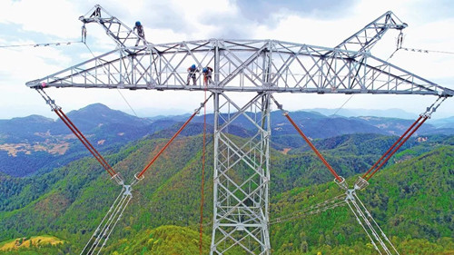 南方電網(wǎng)超高壓公司大理局組織員工在±500千伏金中直流線進行地線斷股修補作業(yè),為西電東送主通道安全排除隱患。周志旺