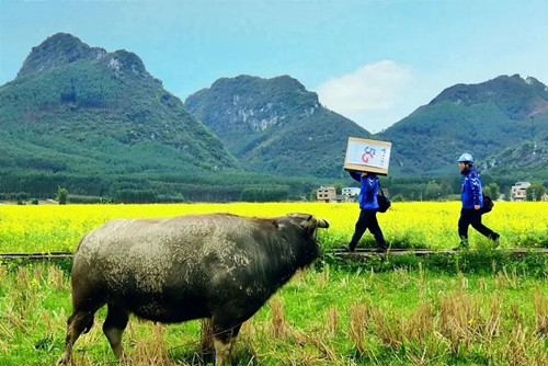 中國電信柳州分公司加快5G等新型信息基礎(chǔ)設(shè)施建設(shè),在春日里的田間地頭,施工人員肩扛設(shè)備前往基站建設(shè)點(diǎn)。