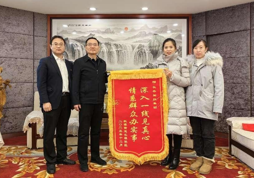 12月21日上午,長春市南關(guān)區(qū)長源社區(qū)黨委書記劉婷、黨委副書記郝一鳴專程來到長春國投集團,向集團黨委贈送了 “深入一線見真心,情系群眾辦實事”錦旗,對國投集團黨委在長源社區(qū)服務(wù)居民工作中的辛勤付出表示感謝。