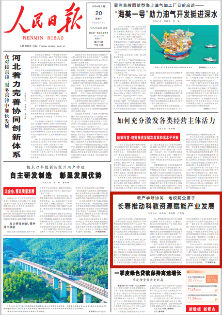 5月20日,《人民日?qǐng)?bào)》頭版刊發(fā)“政產(chǎn)學(xué)研協(xié)同 地校院企攜手 長(zhǎng)春推動(dòng)科教資源賦能產(chǎn)業(yè)發(fā)展”文章,專題報(bào)道長(zhǎng)春科技創(chuàng)新發(fā)展,全文如下。