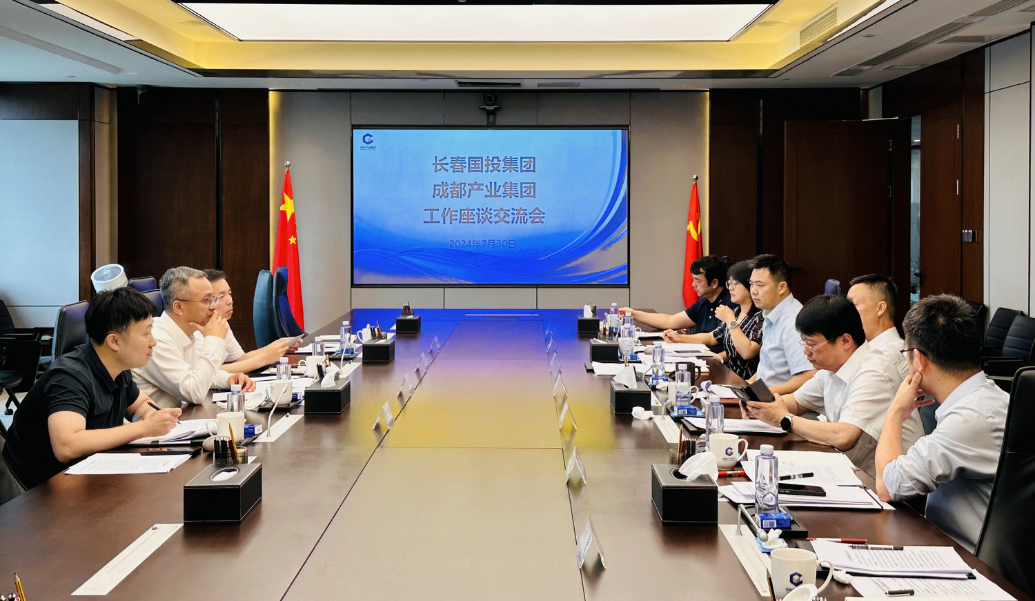 為深入貫徹黨的二十屆三中全會精神,落實(shí)好長春市委市政府關(guān)于赴成都市等地交流學(xué)習(xí)工作部署,學(xué)習(xí)成都市屬國企在改革發(fā)展、產(chǎn)業(yè)升級、科創(chuàng)服務(wù)等領(lǐng)域先進(jìn)經(jīng)驗(yàn),7月30日,長春國投集團(tuán)黨委書記、董事長徐國斌一行赴成都產(chǎn)業(yè)集團(tuán)調(diào)研,與成都產(chǎn)業(yè)集團(tuán)黨委書記、董事長苗偉,黨委專職副書記、董事、工會主席張栩,副總經(jīng)理何興玉等同志就有關(guān)問題交流座談。