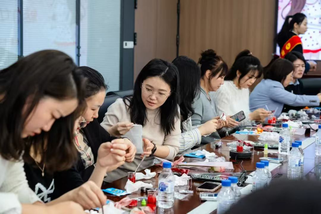 活動中,女職工們在專業(yè)老師的指導(dǎo)下,詳細了解了口紅制作原料和工具,學(xué)習(xí)了制作工藝流程。她們親自嘗試調(diào)配顏色、加熱攪拌、灌裝定型,一枚枚專屬口紅在巧手翻飛間誕生,現(xiàn)場歡聲笑語不斷,洋溢著濃厚的節(jié)日氛圍。